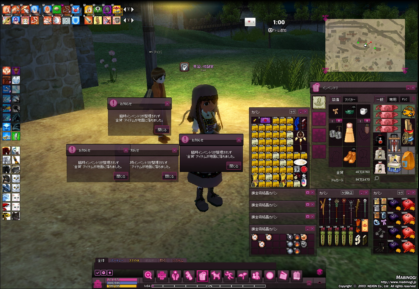 お金が落ちたことより、臨時インベントリの金貨音でびっくりです。
